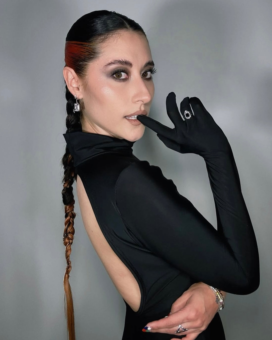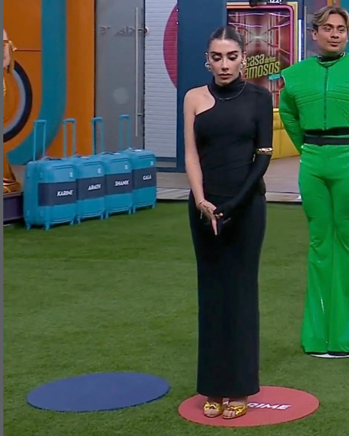 Vestido largo asimétrico de tejido elástico con escote en espalda.